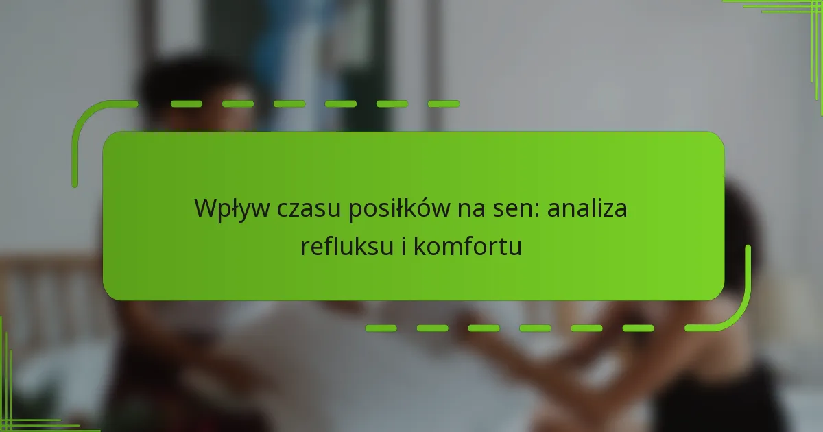 Godzina posiłków ma znaczący wpływ na refluks żołądkowy, ponieważ późne jedzenie może wywoływać objawy, które zakłócają jakość snu. Spożywanie jedzenia blisko pory snu może prowadzić do dyskomfortu i zwiększonej produkcji kwasu żołądkowego, co utrudnia spokojny wypoczynek.