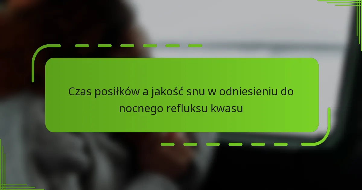 Moment posiłków jest kluczowy dla zarządzania nocnymi objawami refluksu kwasowego. Zaleca się jedzenie co najmniej dwie do trzech godzin przed snem, aby umożliwić prawidłowe trawienie. Ten czas pomaga zmniejszyć prawdopodobieństwo refluksu kwasowego podczas snu.