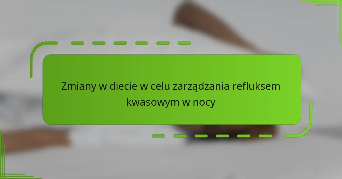 Przyjęcie zdrowej diety może znacząco złagodzić nocne objawy refluksu kwasowego. Pokarmy niskotłuszczowe i bogate w błonnik, takie jak owoce, warzywa i pełnoziarniste produkty, mogą wspierać zdrowie układu pokarmowego. Unikanie pikantnych, kwaśnych i tłustych potraw jest kluczowe, ponieważ mogą one wywoływać epizody refluksu.